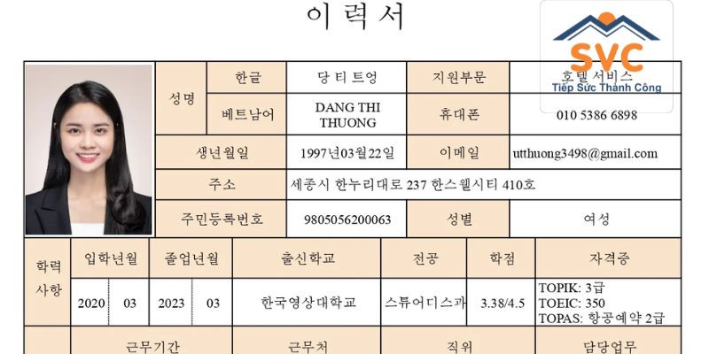 Một bản CV tiếng Hàn chuẩn, trình bày rõ ràng là chìa khóa thành công khi bạn muốn ứng tuyển công việc. Thế nhưng, việc viết CV bằng tiếng Hàn sẽ trở nên khó khăn hơn đối với những ai không quen thuộc với ngôn ngữ này. Bài viết sau đây, SVC sẽ giúp bạn tìm hiểu về những thông tin cần thiết để tạo ra một bản CV chuẩn, cách viết CV tiếng Hàn chuyên nghiệp và thu hút được nhà tuyển dụng.